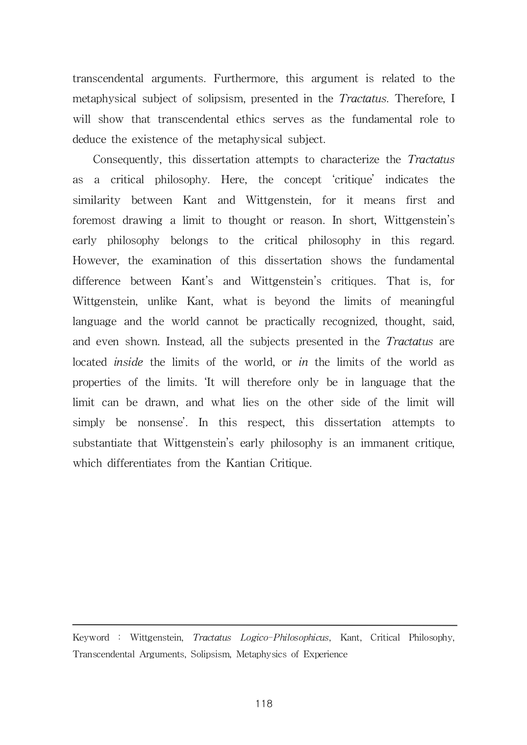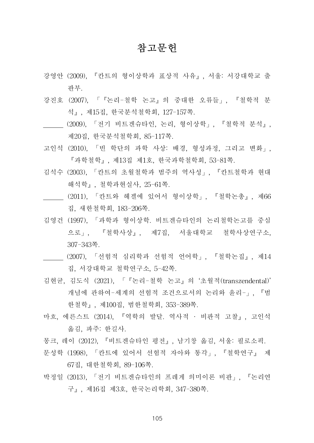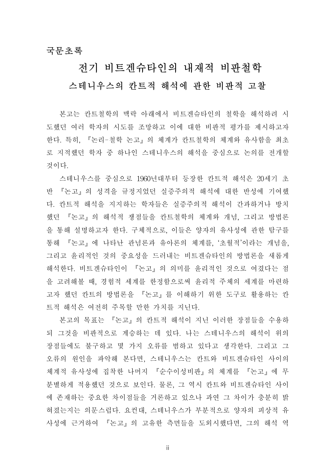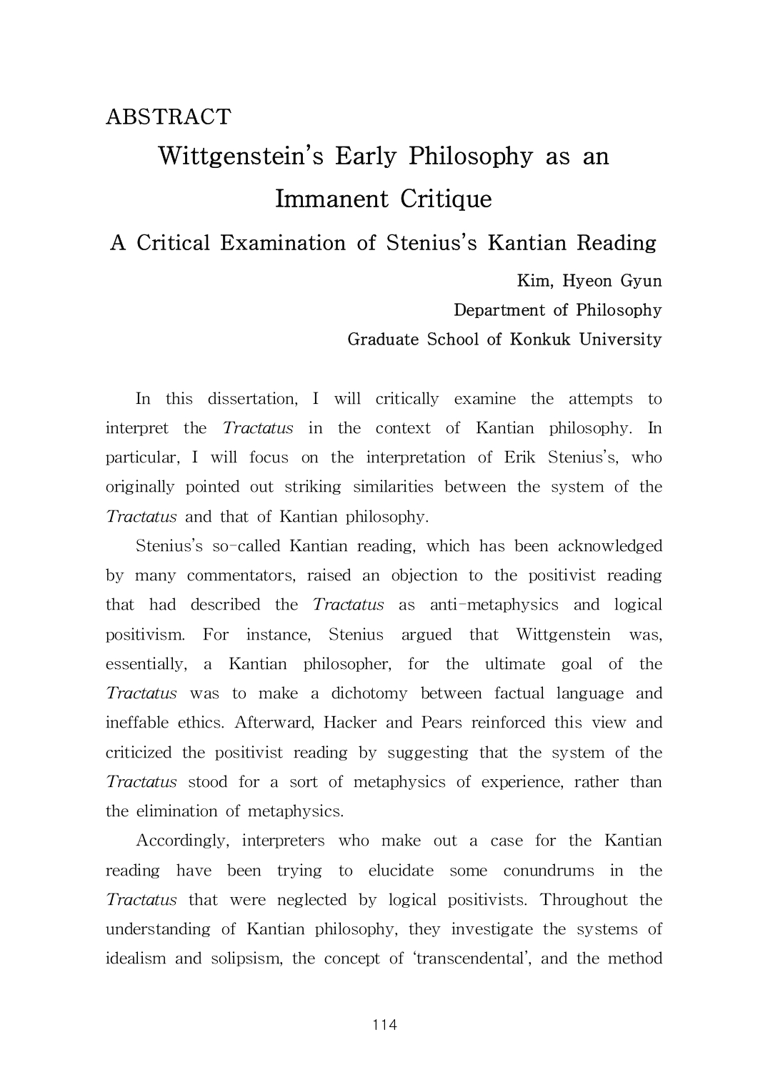 김현균. 「전기 비트겐슈타인의 내재적 비판철학 : 스테니우스의 칸트적 해석에 관한 비판적 고찰」. 건국대학교 일반대학원 석사학위논문. 2022.