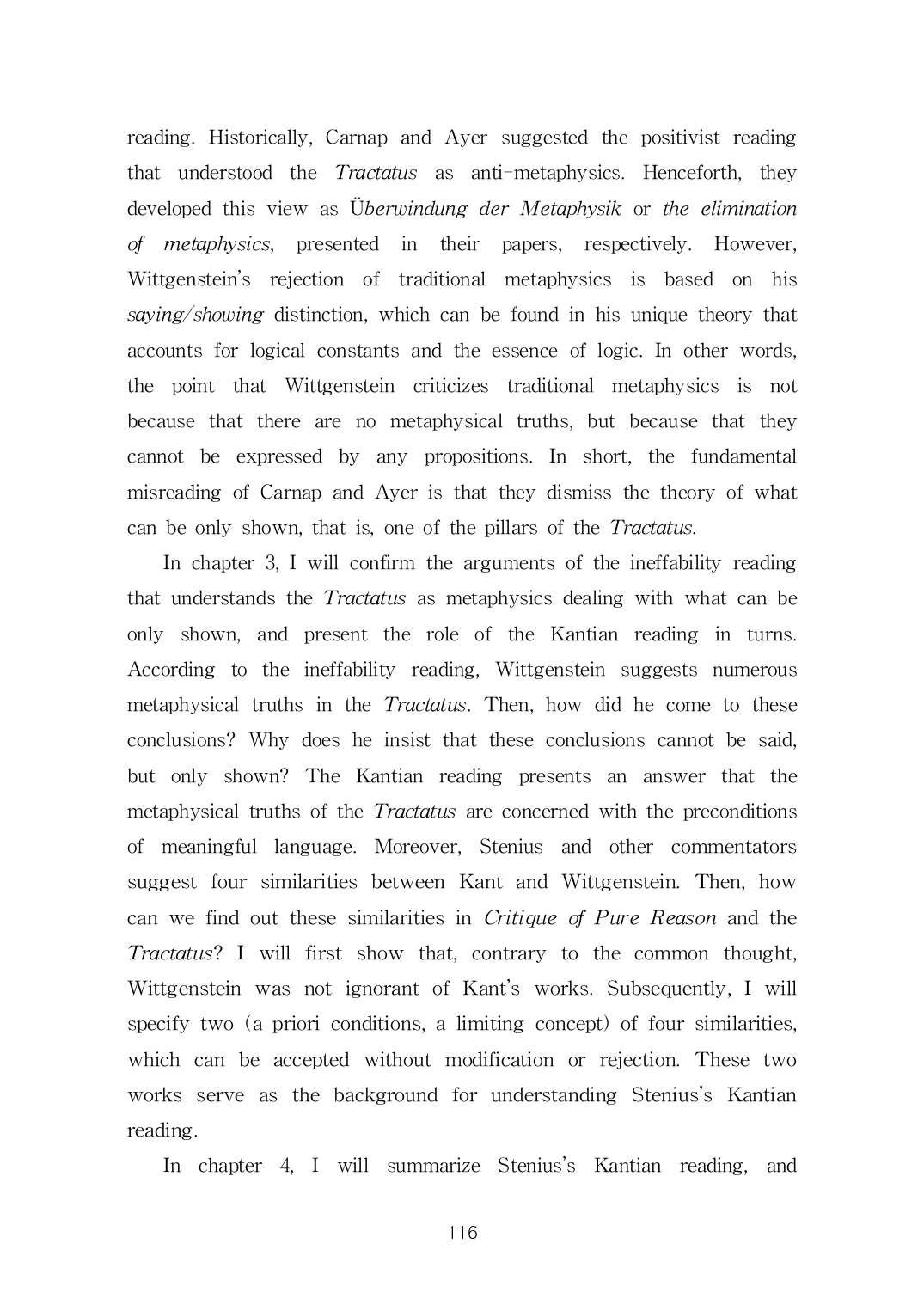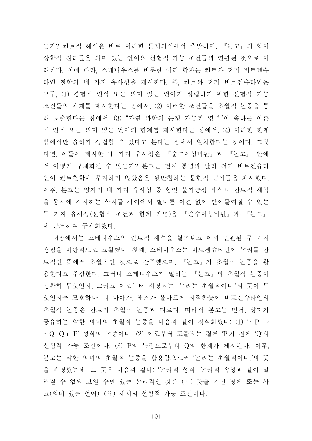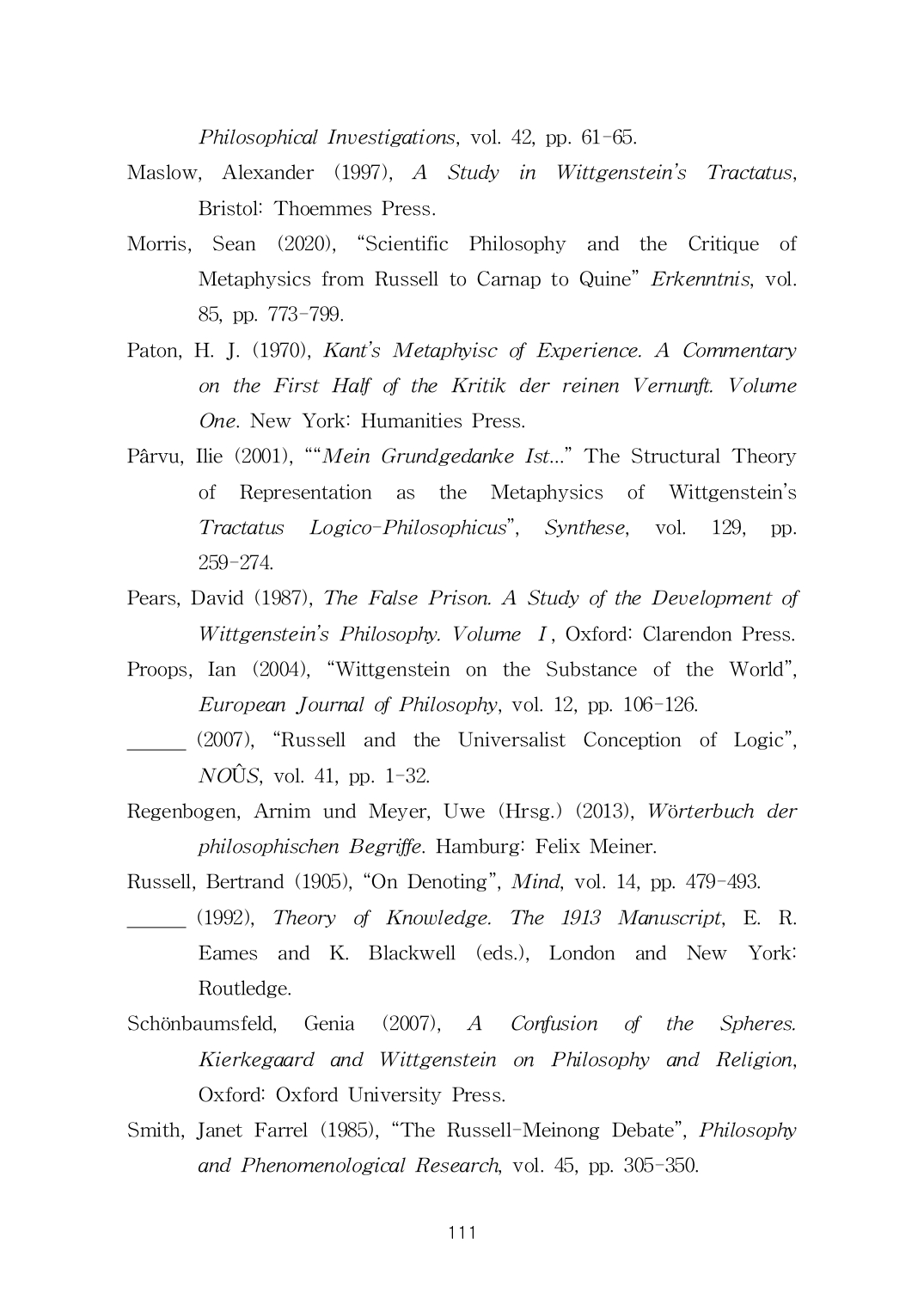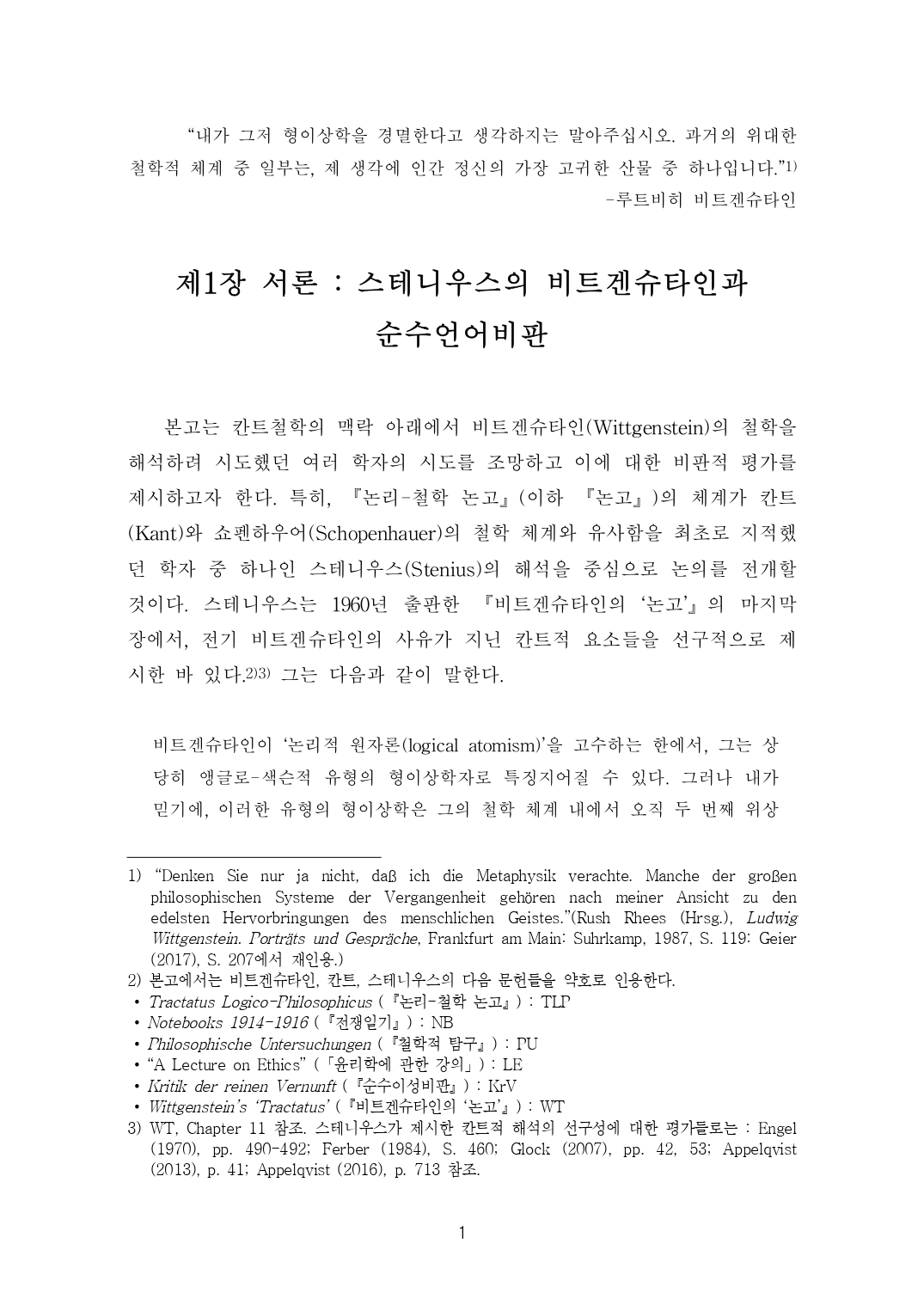 김현균. 「전기 비트겐슈타인의 내재적 비판철학 : 스테니우스의 칸트적 해석에 관한 비판적 고찰」. 건국대학교 일반대학원 석사학위논문. 2022.