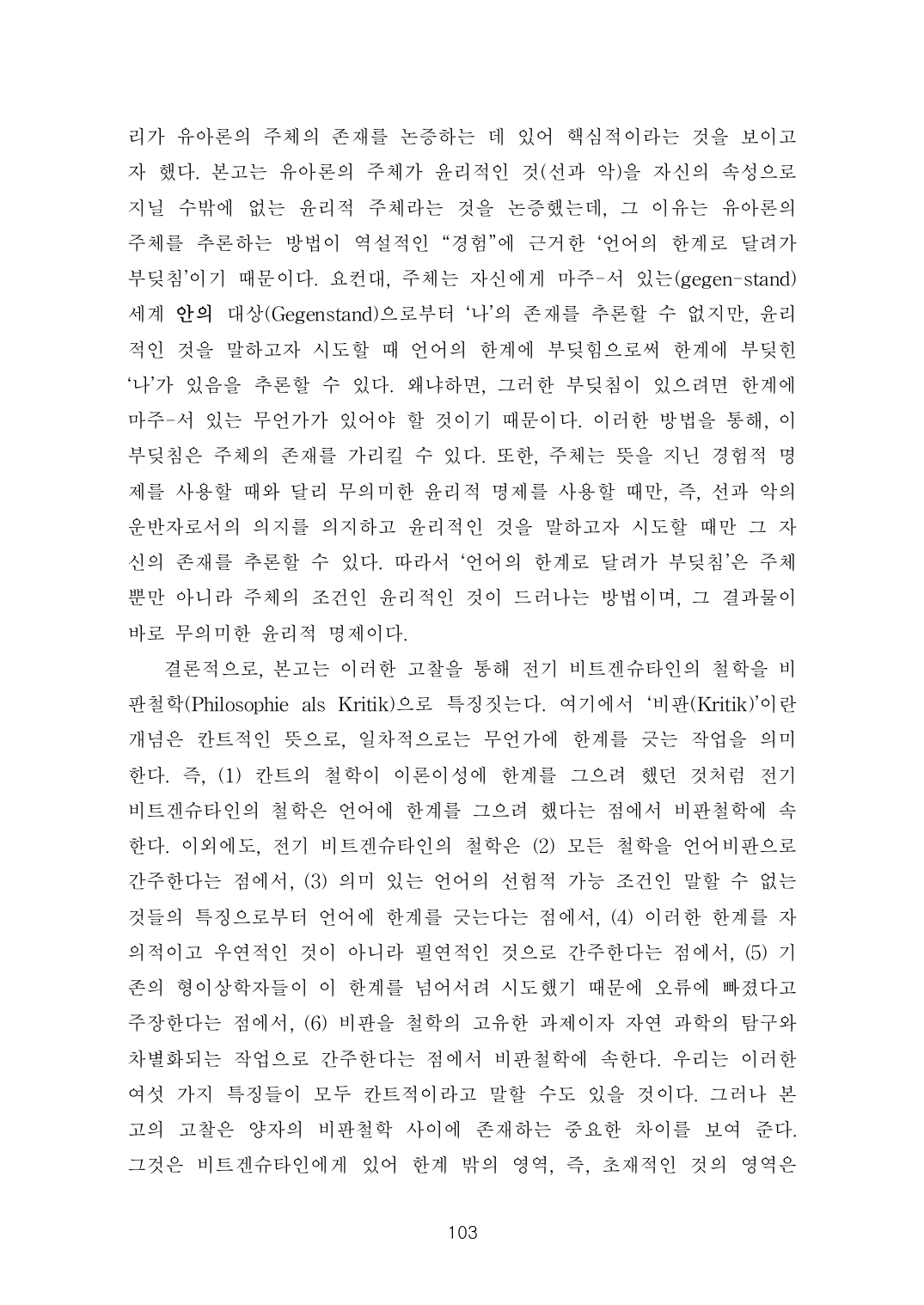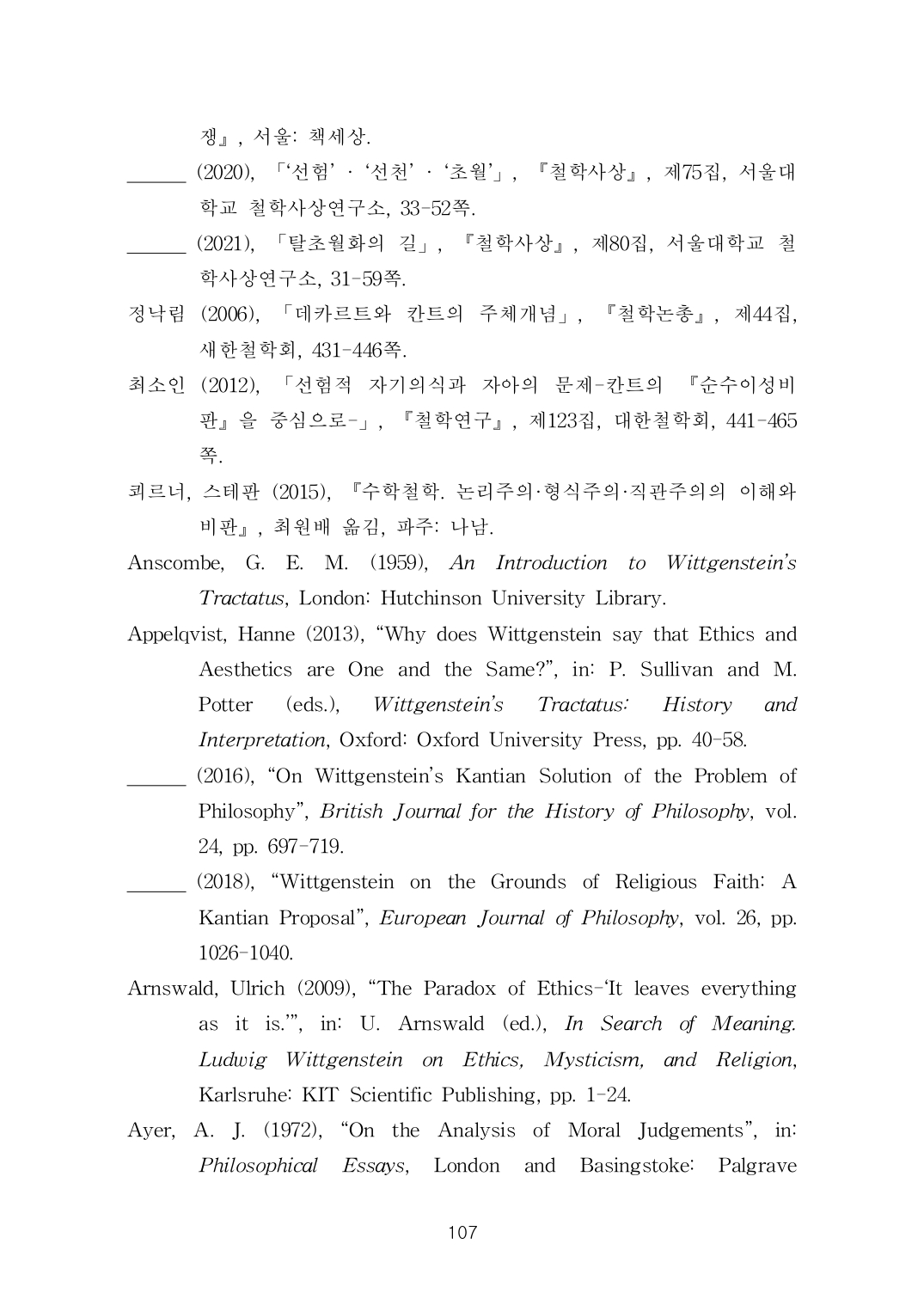 | 전기 비트겐슈타인의 철학에 나타난 바이닝거적 세계관의 극복-자살에 관한 윤리적 성찰을 중심으로- (0) | 2023.12.21 |
