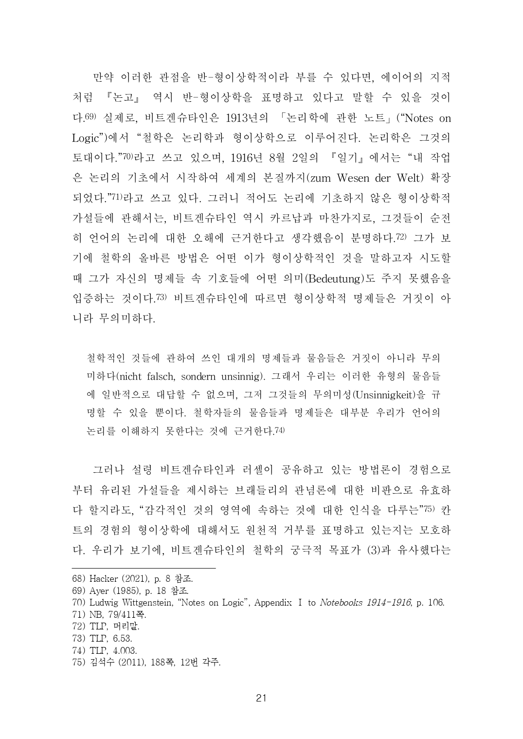 | 『논리-철학 논고』의 ‘초월적(transzendental)’ 개념에 관하여― 세계의 선험적 조건으로서의 논리와 윤리 ― (0) | 2023.12.21 |