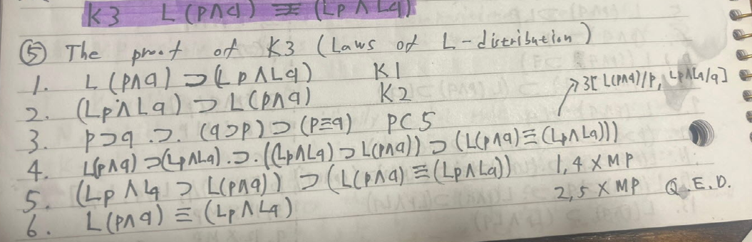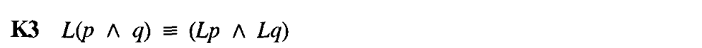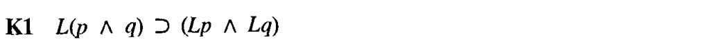 K1 L(p ∧ q) ⊃ (Lp ∧ Lq)
