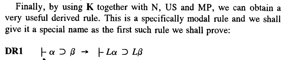 ※ US and MP are not specifically modal rules. US in particular is a rule that it is plausible to require of any logical system with a class of symbols to be interpreted as propositional variables.