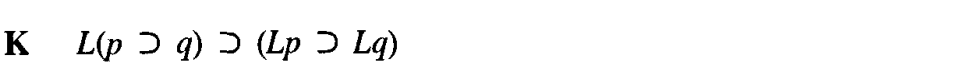 K: L(p ⊃ q) ⊃ (Lp ⊃ Lq)