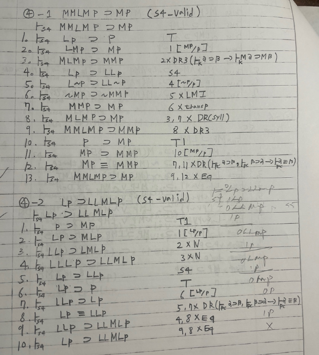 2023-2 Modal Logic (Segment 3) Q) Explain the system S1. In what sense is it the case that the “unrestricted” rules of Necessitation does not hold in S1. Does pc tautology necessitation hold in S1 ? What is the Cresswell argument (See my SS1 paper) that S1 has no theorems of the form LL(p⊃ p)? Explain the semantic system for S2 and S3 and S4 where one introduces odd vs normal worlds. Note that b..